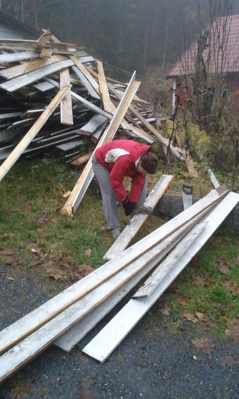 Tanken er å dekorere den ene veggen i stua, og lage hodegjerde bak senga hennes med sånne gamle plank....